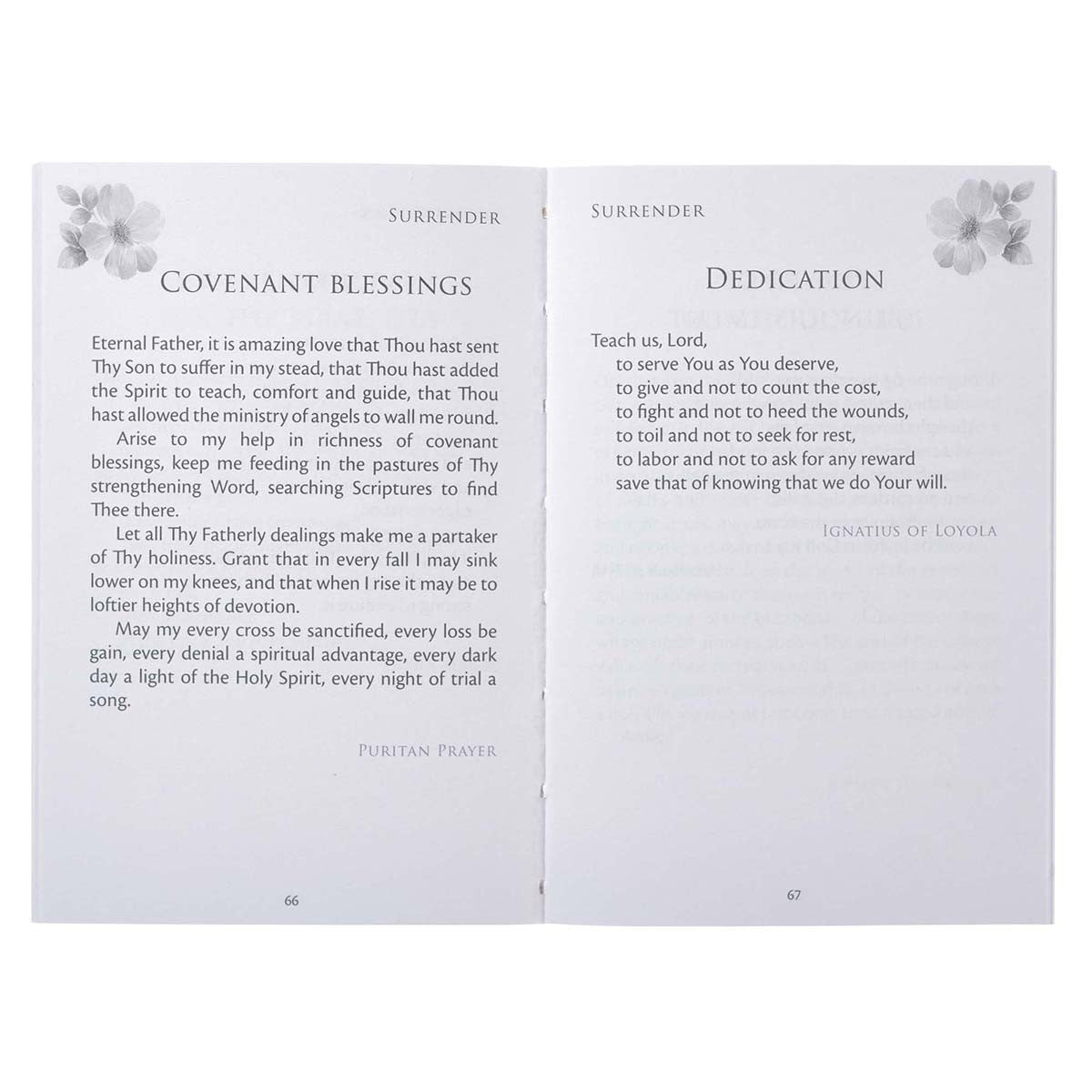 This little book holds a collection of scripture and well-loved prayers, curated to help you develop your prayer life. Inside you will find a presentation page to complete when you give this book as a gift, and a table of contents that lists prayers according to topic: